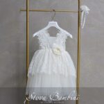 Εκλεπτυσμένο και διαχρονικά κομψό φόρεμα σε φίνα ivory απόχρωση, που ξεχωρίζει για την ιδιαίτερη υφή και τη λεπτομέρειά του. Το μπούστο από περίτεχνη δαντέλα Ιταλίας με διακριτικές διαφάνειες αναδεικνύει με μοναδικό τρόπο το σχέδιο, ενώ οι εντυπωσιακές δαντελένιες τιράντες προσθέτουν μία αίσθηση υψηλής αισθητικής. Η φούστα από πλούσια δαντέλα του επώνυμου Γαλλικού Οίκου Sophie Hallette σε συνδυασμό με ανάλαφρο τούλι Ισπανίας, δημιουργεί ένα αέρινο αποτέλεσμα με όμορφη κίνηση και βάθος. Η ζώνη στη μέση ολοκληρώνεται με ένα εντυπωσιακό χειροποίητο λουλούδι, προσθέτοντας μία φίνα και διακριτική πινελιά πολυτέλειας στο σύνολο. Η πλάτη με τα κουμπάκια και το κομψό δέσιμο ενισχύει τον εκλεπτυσμένο χαρακτήρα του φορέματος, χαρίζοντας μία ολοκληρωμένη εικόνα υψηλής ραπτικής. Όλα τα φορέματα διαθέτουν εσωτερική επένδυση 100% Cotton για απόλυτη άνεση. Διαθέσιμα μεγέθη: 6–36 μηνών και κατά παραγγελία μεγαλύτερα μεγέθη. Όλη η συλλογή σχεδιάζεται και κατασκευάζεται στην Ελλάδα.