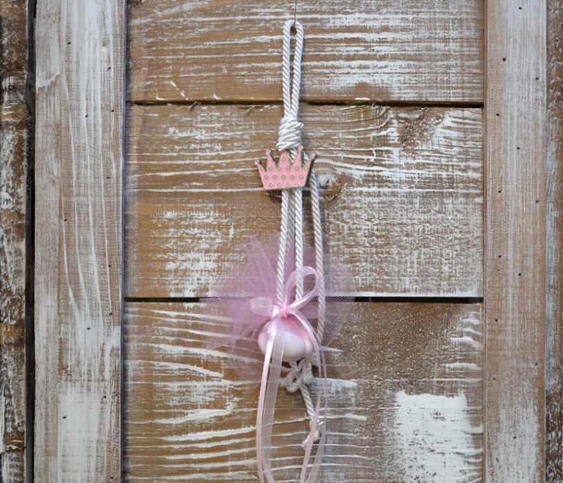 Μπομπονιέρα βάπτισης κρεμαστή με μεταλλική κορώνα