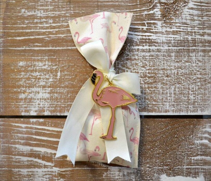 Μπομπονιέρα βάπτισης πουγκί με πάτερν από φλαμίνγκο