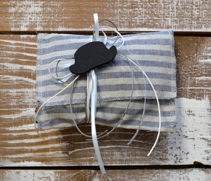 Μπομπονιέρα βάπτισης ριγέ φάκελος με καπέλο
