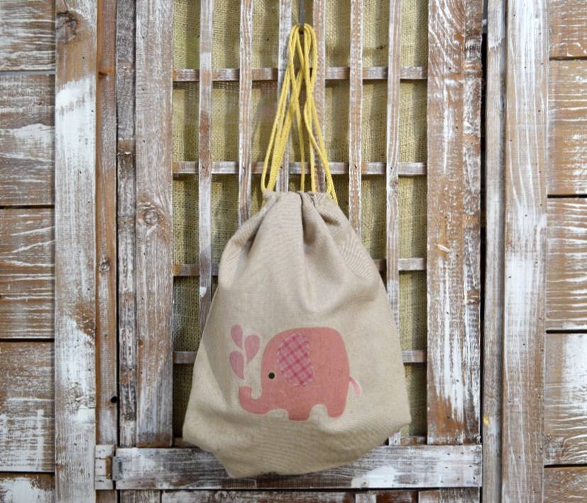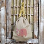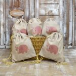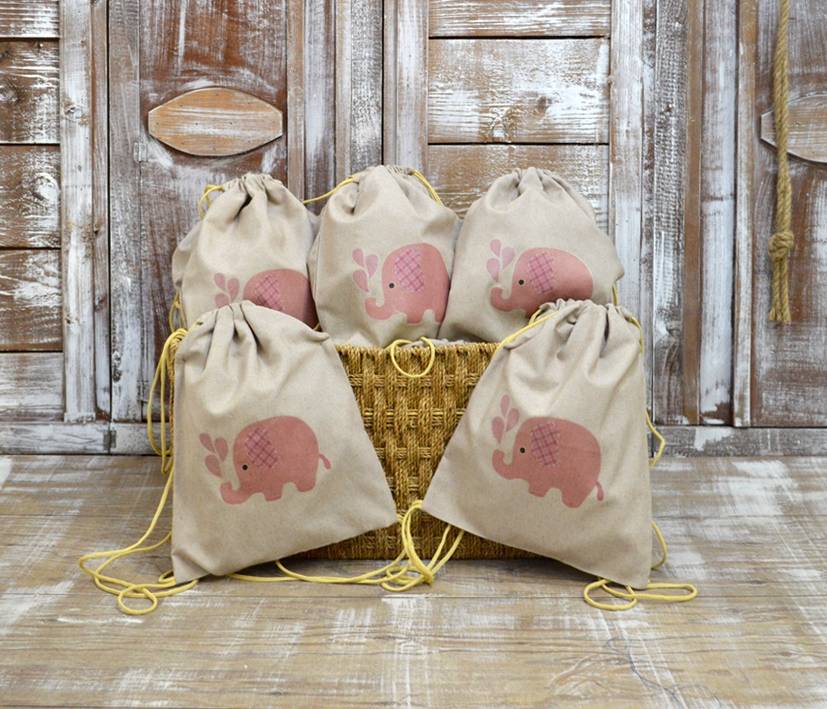 Παιδικές μπομπονιέρες – τσαντάκια με τυπωμένους ροζ ελέφαντες.