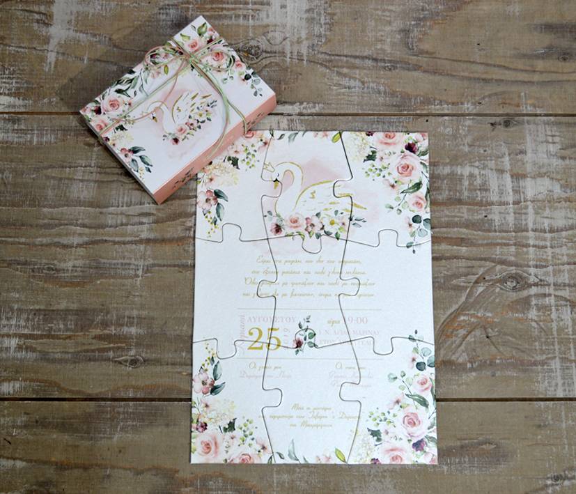 Mπομπονιέρα βάπτισης παιδική ‘παζλ με κύκνο’
