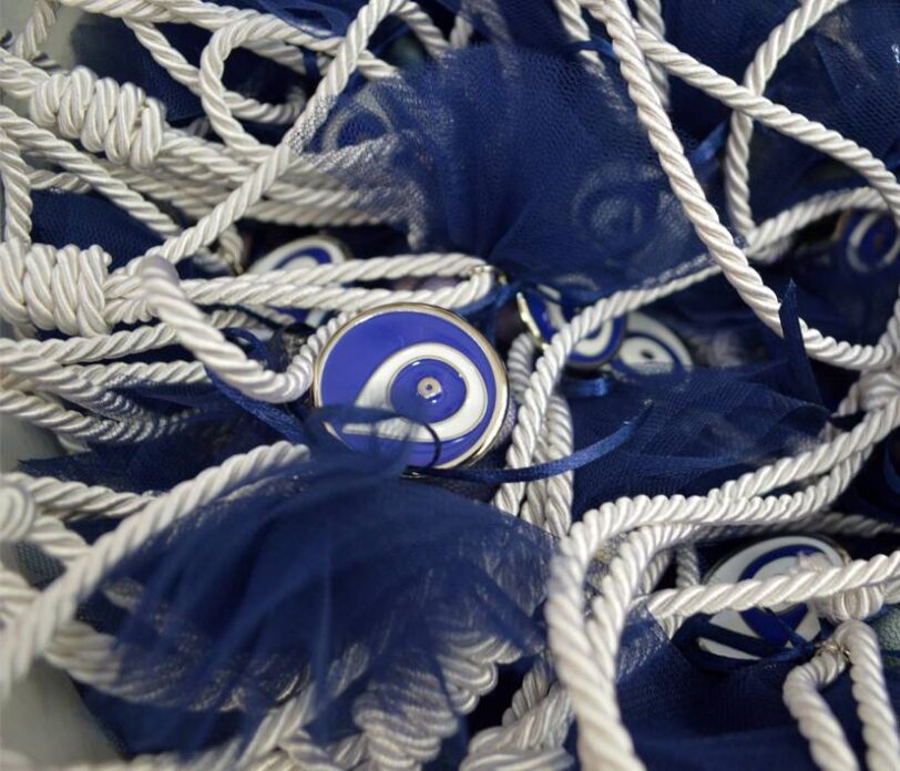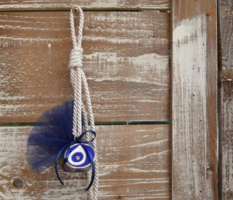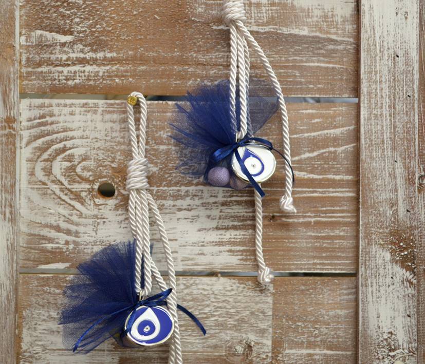 Μπομπονιέρα βάπτισης κρεμαστή ματάκι μπλε
