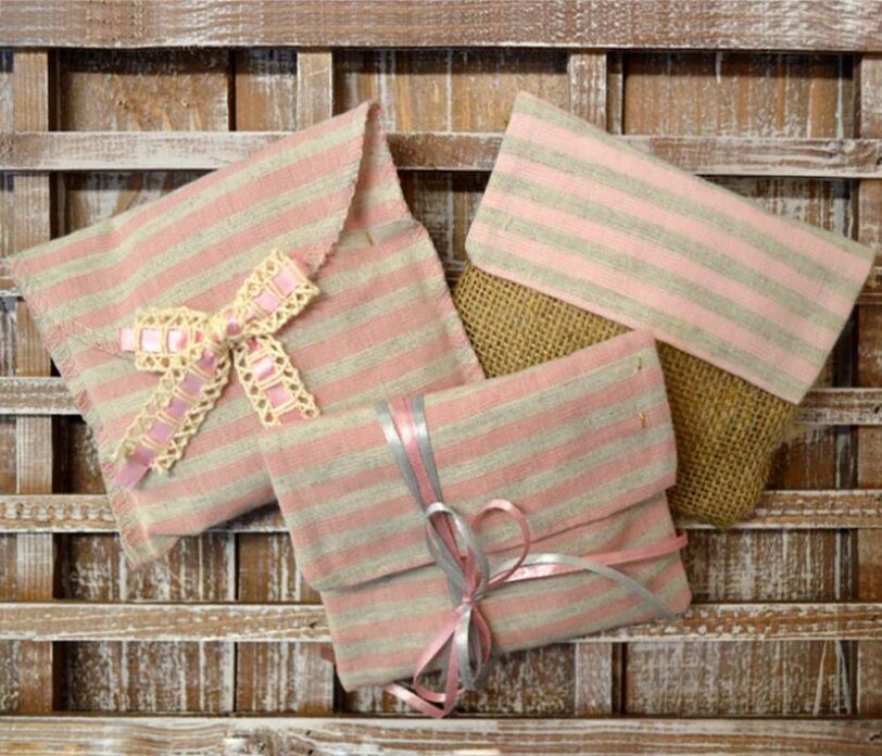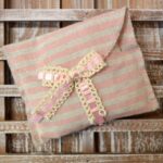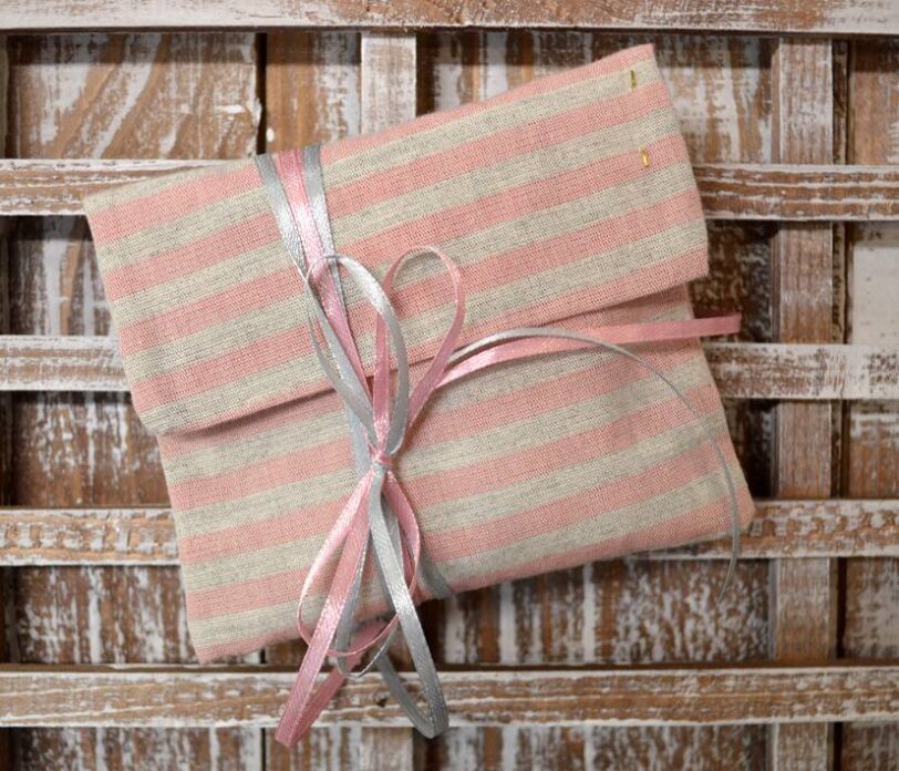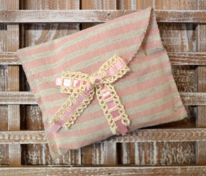 Μπομπονιέρα βάπτισης φάκελος ριγέ ροζ