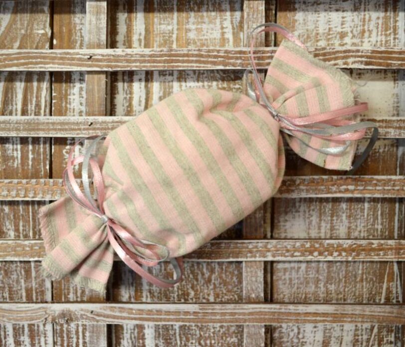 Μπομπονιέρα βάπτισης καραμέλα ριγέ ροζ