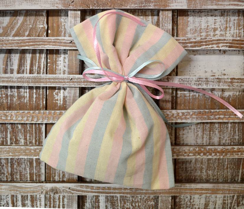 Μπομπονιέρα βάπτισης πουγγί ριγέ ροζ-σιέλ