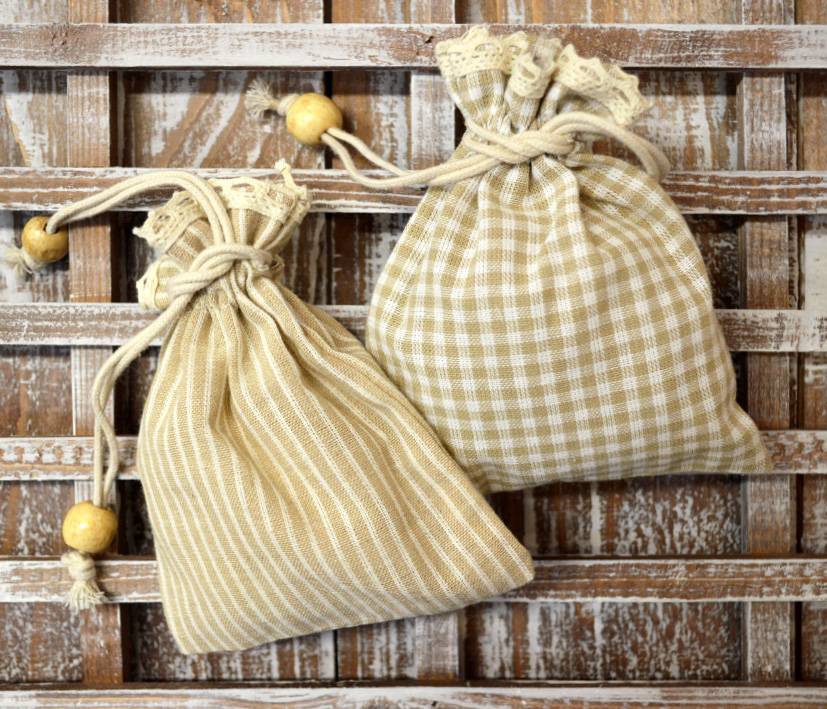 Μπομπονιέρα βάπτισης μικρό πουγγί σουρωτό διάφορα σχέδια