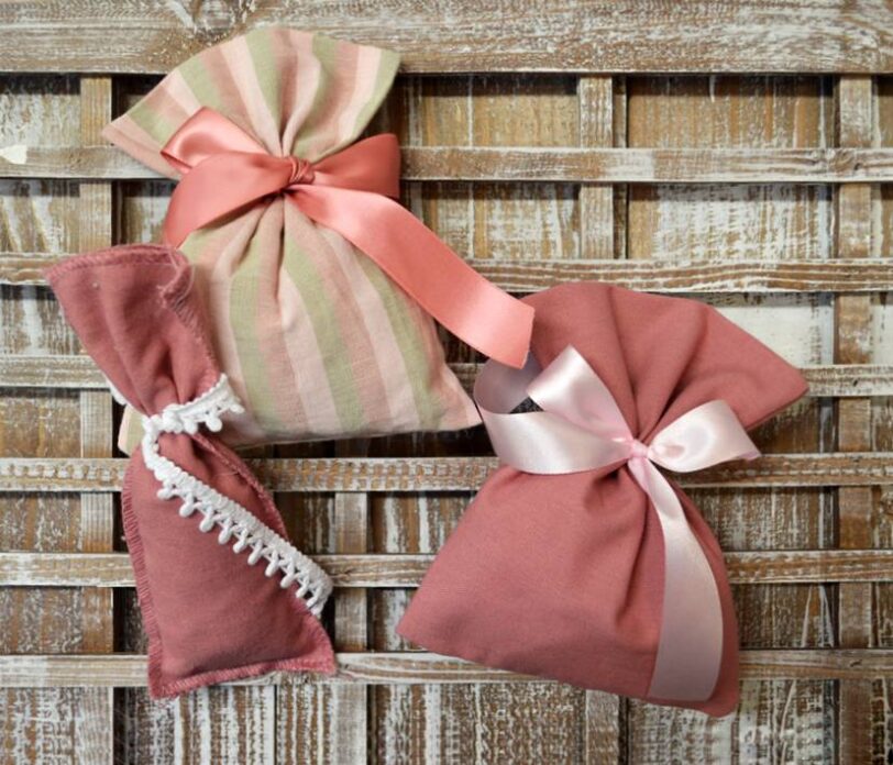 Μπομπονιέρα βάπτισης πουγγί σε σάπιο μήλο