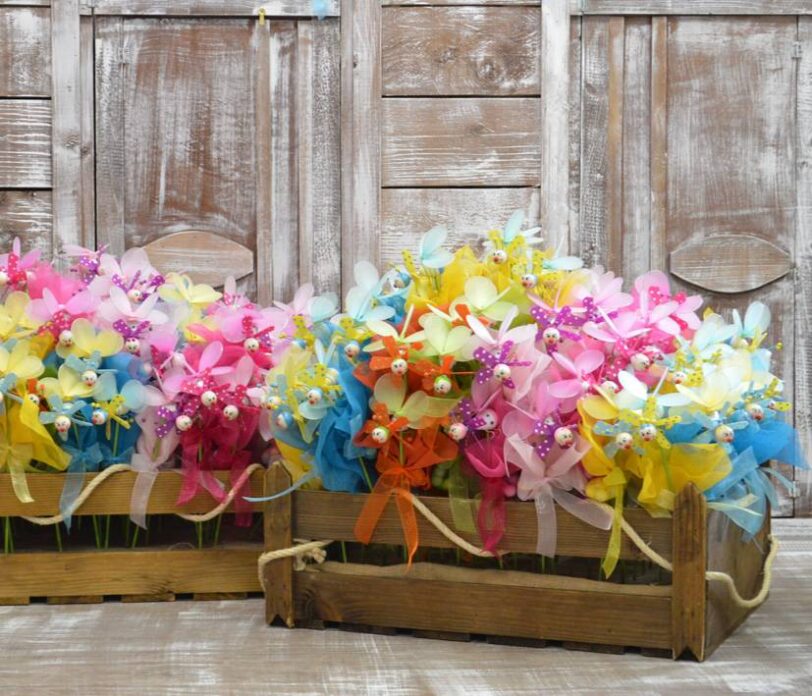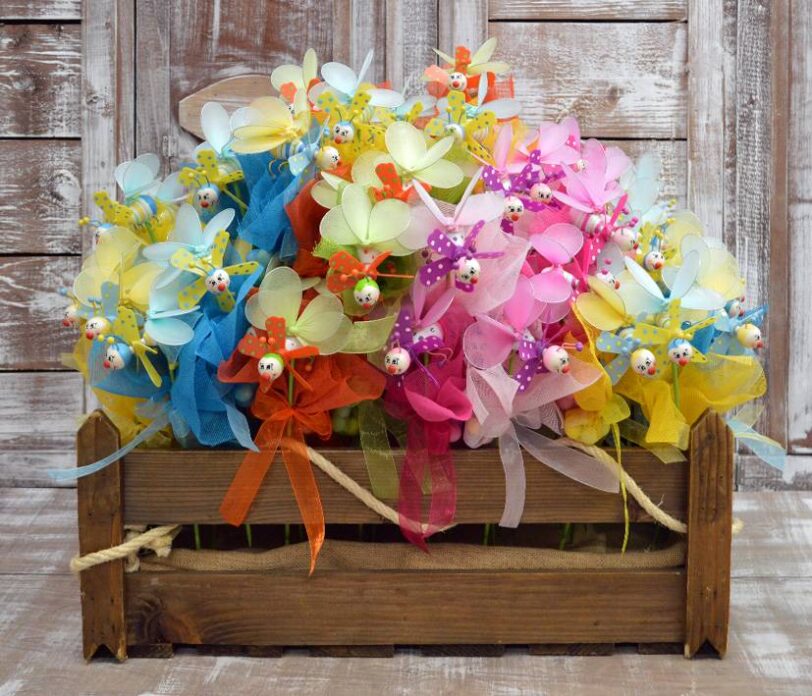 Μπομπονιέρα βάπτισης ανεμόμυλος μελισσάκι