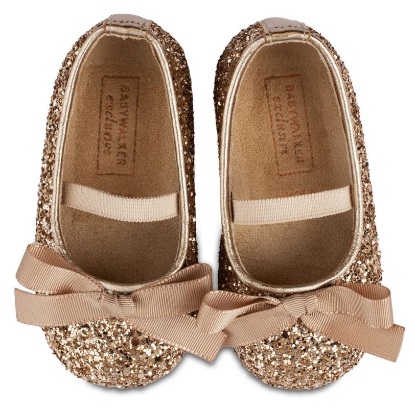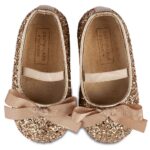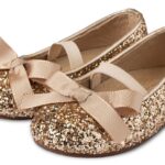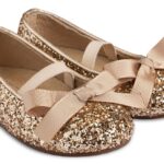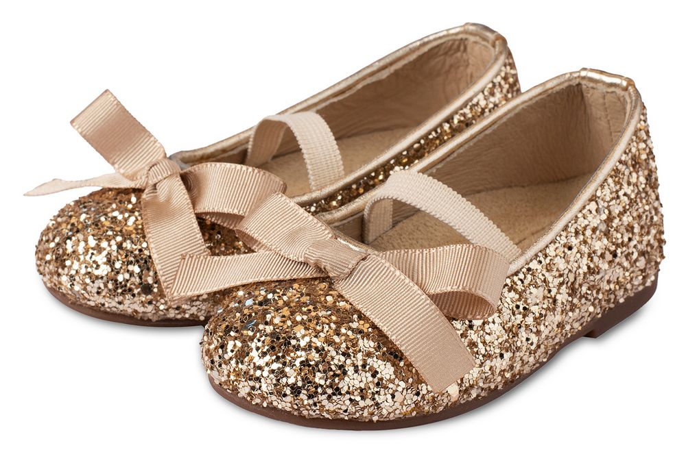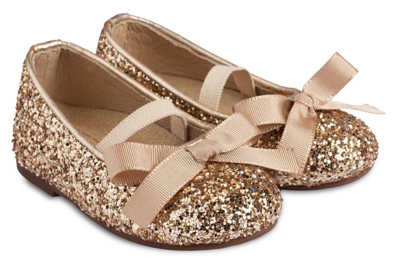 Υφασμάτινο Glitter Γοβάκι με Gros Grain Φιογκάκι σε Χρυσό χρώμα
