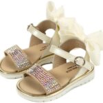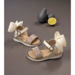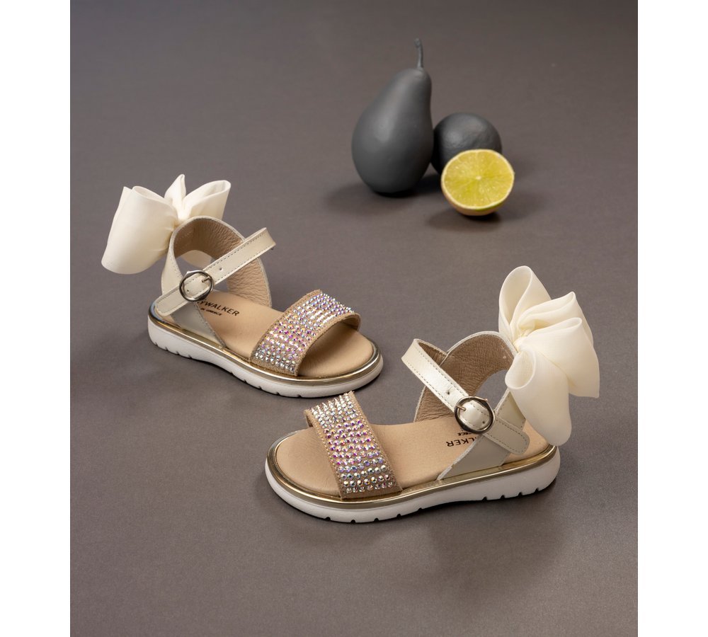 Νούμερο παπουτσιού: 19Δερμάτινο Πέδιλο με Στρας και Φιόγκο στη Φτέρνα από Δέρμα Πέρλα σε Εκρού χρώμα